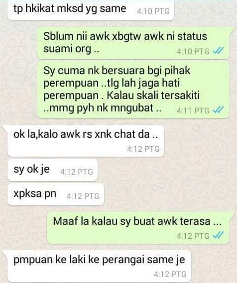 Suami pun janganlah gatal nak puji wanita lain depan isteri kalau tak ayat sentap untuk perempuan. Perempuan yang bercinta dengan laki orang ni aku tktau la nak label apa.
